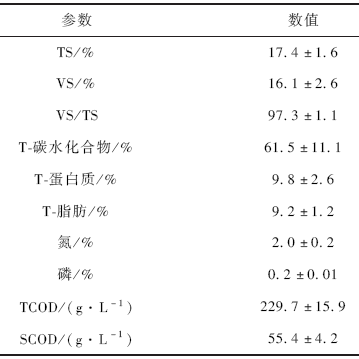 實驗所用的廚余垃圾取自于西安思源學院學生食堂,主要包括米飯、面條、饅頭、蔬菜、肉和蛋類等食物殘渣,原料首先人工剔除掉其中的骨頭以及塑料等無機雜質,然后利用食物粉碎機將其破碎至顆粒尺寸5 mm 以下,其物理化學特性見表1。