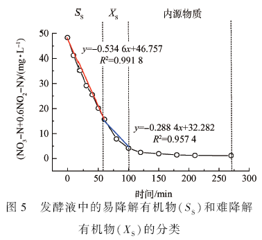 如圖5 所示,混合碳源中的SS 可以根據碳源的PDN 和由快速降解碳源引起的N 損耗計算出來,公式如下: