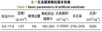 將硅藻土、沸石粉、礦渣硅酸鹽水泥等無機材料與玉米芯按配比混勻, 玉米芯質量比為5%, 置入滾動造粒機造粒, 在20~25 r·min-1轉速下, 使用噴霧器向造粒機內不斷噴灑水霧, 使原料逐漸滾動成直徑9~12 mm的球形顆粒;將顆粒取出平鋪在平板上并放置于陰涼處, 每天早晚各灑水養護一次, 灑水至顆粒表面濕潤, 養護3~5 d后晾干即得到生態基質顆粒.
