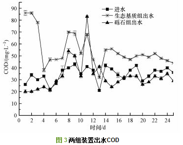 3 結果與討論 3.1 生態基質對出水COD的影響