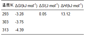 對吸附熱力學的研究可以考察吸附過程的吉布斯自由能變化(ΔG)、熵變(ΔS)和焓變(ΔH),進而分析吸附的推動力或者判斷吸附過程是否自發(fā)進行等.熱力學參數(shù)可以通過式(7)和式(8)求出(Fan et al.,2013).